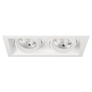 Встраиваемый карданный светильник. Мощность 2х30 Вт, св. поток 6208 лм, 103 лм/Вт, тёплый 3000 K, CRI>92, угол 17°, напряжение питания 230 В. Белый корпус из алюминия, белая вставка, степень защиты IP20. Размер: длина 250 мм, ширина 140 мм, высота 125 мм. Монтаж встраиваемый, установочное отверстие: длина 230 мм, ширина 120 мм. Драйвер 24-42 В, 750 мА, пульсация <2%.